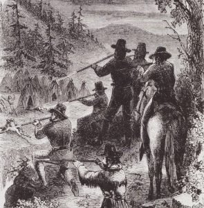 At least 4,500 California Indians are killed between 1846 and 1873 by miners and settlers individually or by vigilante packs, and by militia and U.S. Army forces. Total violent deaths may be triple that, most of them in the early gold rush years.