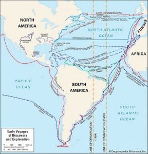 1500, Sailing far to west to pick up best winds to run south on his way to India (his fleet is following up on Da Gama’s voyage), Pedro Álvares Cabral makes landfall on Bahian coast of Brazil, April. He claims it for Portugal.